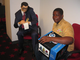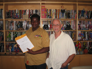 Yesterday, I finally got a chance to crawl out of my cave, take the train from Connecticut to the DC Comics offices in New York, to meet the true heroes of The Kid Who Saved Superman, Hakeem and Mr. Brown. And Stanley.