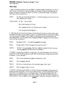 At any rate, I never did sell to Cracked, but my efforts at funny survive. Here, for you to mock and judge harshly (click on images to view them at a readable size), the unpublished script of “The Spookit”: