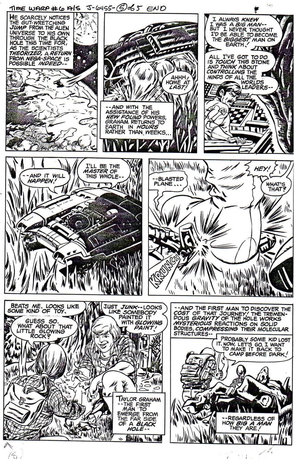 I also wrote “The Man Who Would Be Conqueror,” a 5-pager, drawn by Michael Adams and, I believe, Steve Mitchell again, that was sent to the inventory drawer with the death of Time Warp. Looking at the science fiction gimmick cliche it wound up being, I should be grateful for that…instead, in my never ending quest to entertain you (both of you, in fact!) and to embarrass myself (and please click on images to see them at a readable size to maximize my embarassment), I present: