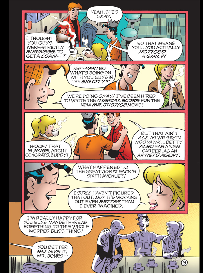 Click on the images to view them in larger size…then go out and but lots of copies of Life With Archie: The Married Life #5, on sale at comic shops as well as Toys R Us, and many of the big national chain bookstores and drugstores.