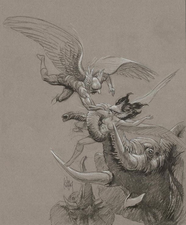 James makes it home for his Trickster equipment, just barely, with Wendy caught in the middle of this madness. Emma’s jealous that she’s not the damsel in distress. The Trickster and Sue go at it, tearing up more of Crumbly in the process.