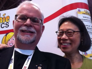 … But The Trickster tells the cops to hold on, that he can prove it’s Bunding who should be arrested! Everybody troops downstairs to the Security room and Trickster pops out the videotape, effectively hoisting Bunding on his own petard. He tells them it’s all part of his ongoing investigation into Walter’s illegal activities, even claiming that Sue was in on it to help gather the evidence to make it sound good. Sue is startled, but she plays along… and thinks that now that she’s no longer under contractual obligation to kill Trickster, maybe they can get together sometime…?